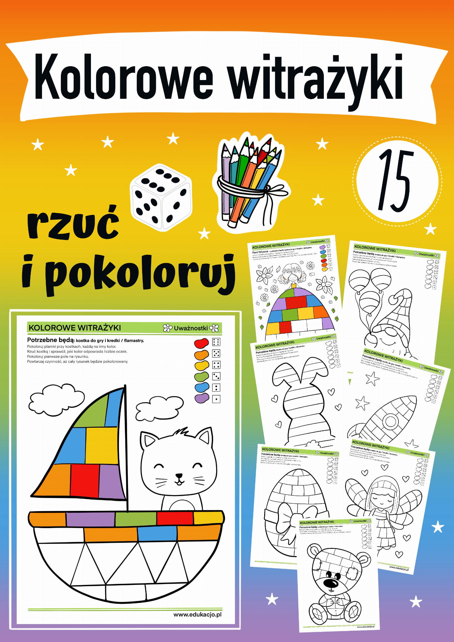 KOLOROWANKI Z KOSTKĄ do gry - kolorowe i magiczne witrażyki