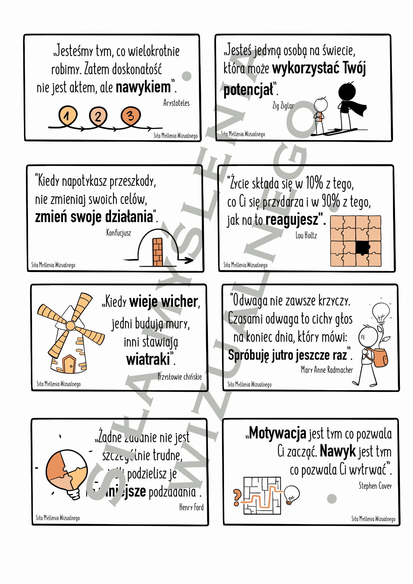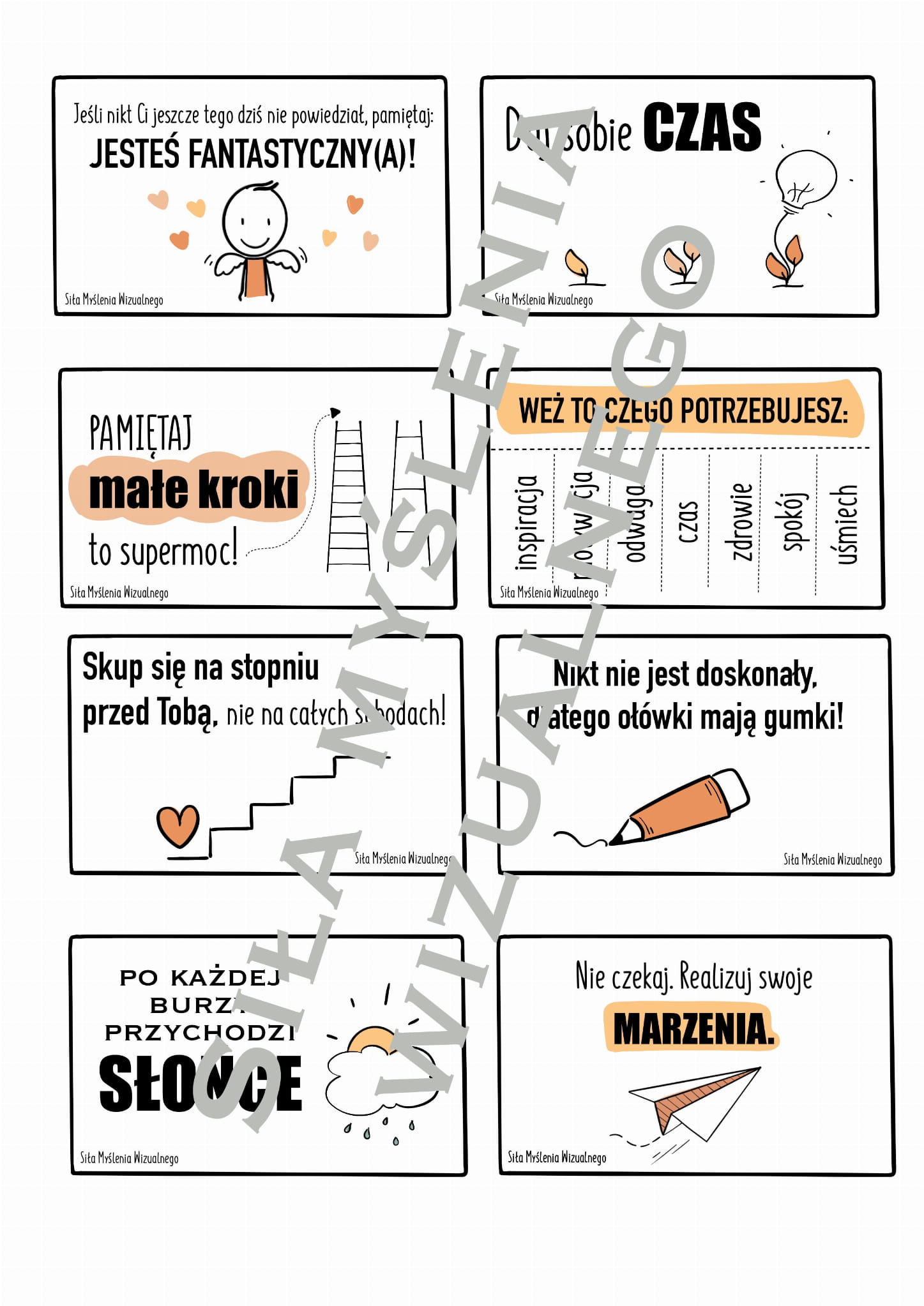 ZESTAW zawiera 120 karteczek (60 MOTYWATORKÓW i 60 CYTATÓW) do wydrukowania w formie PDF