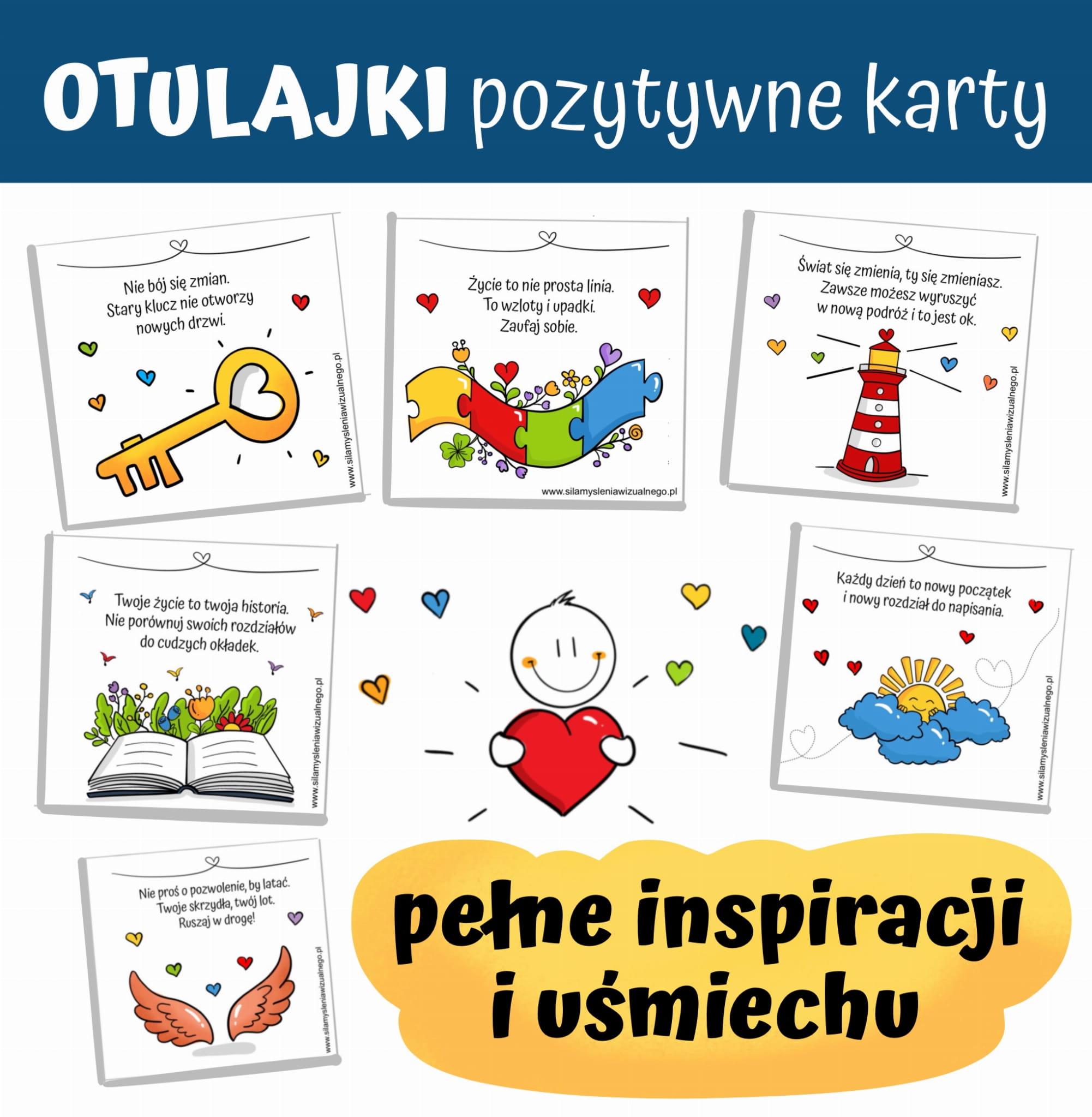 Kolorowe karty pełne inspiracji, motywacji i dobrych myśli.