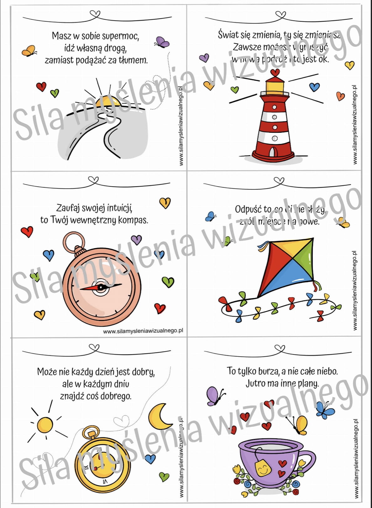 ZESTAW zawiera 72 karty pełne inspiracji i pozytywnych myśli do wydruku.